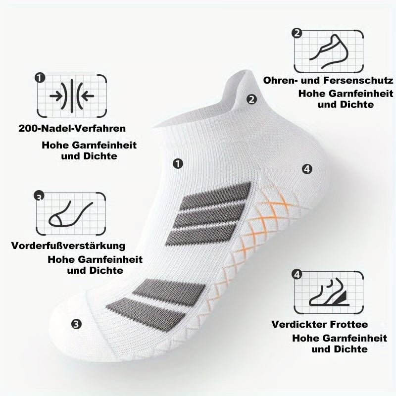 Unsere Socken verfügen über eine geeignete Kompression im Fußgewölbe, um Sie beim Gehen, Joggen und Laufen zu schützen, und bieten Stabilität für eine perfekte Passform.